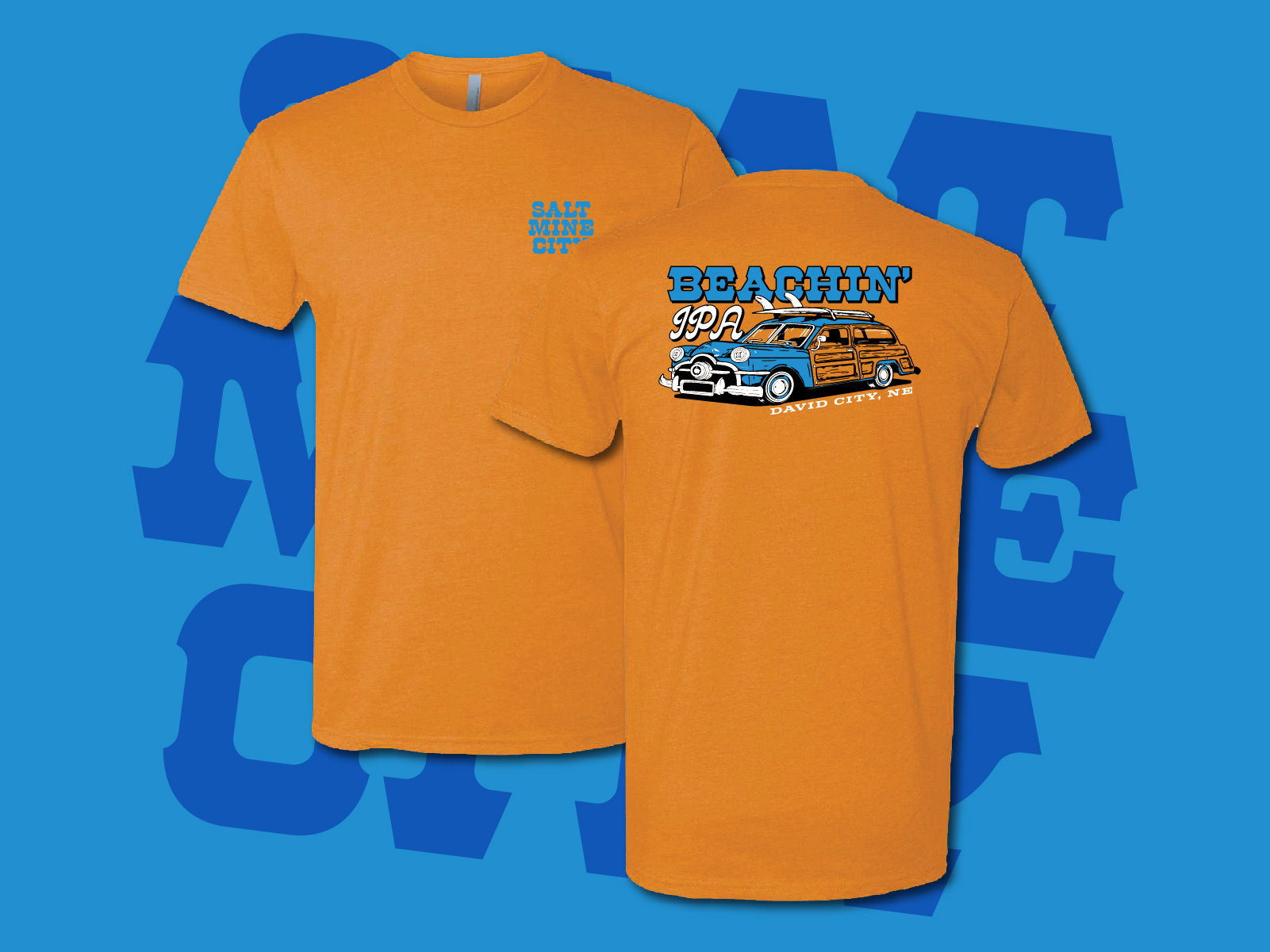 Client: Salt Mine City Brewery Services: Illustration, Apparel Design, Branding Support Crumby Creative partnered with Salt Mine City Brewery in David City, Nebraska to design a collection of apparel graphics inspired by their handcrafted beers. Each illustration corresponds to a signature brew — Beachin’ IPA, Cruisin’ Cream Ale, and Single Axle Amber — translating the brewery’s personality into playful, vintage-inspired artwork. The series features detailed vehicle illustrations paired with bold, retro typography and color palettes that echo the character of each beer. Designed with screen printing in mind, every piece maintains strong contrast and simplified color layers for clean, high-quality prints. The final collection connects craft beer culture with automotive nostalgia, giving Salt Mine City a cohesive visual identity that stands out both behind the bar and in the taproom.